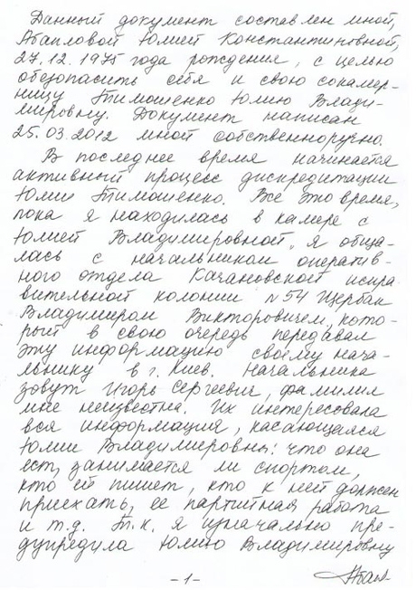 В БЮТ обнародовали текст письма, адресованное Сергею Власенко, написанного бывшей сокамерницей Юлии Тимошенко – Юлией Абапловой о будущей дискредитации экс-премьера.