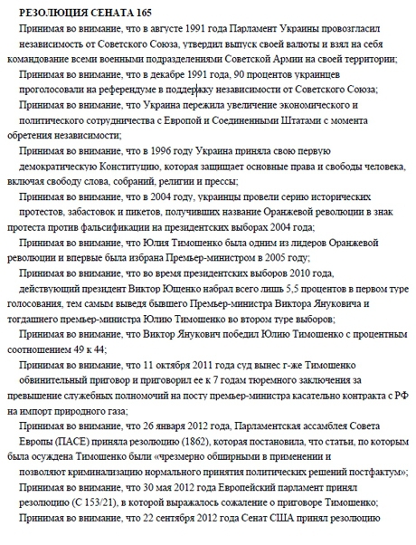 Соответствующий текст содержится в проекте резолюции, в котором американские сенаторы призывают власти Украины освободить из заключения экс-премьер-министра Юлию Тимошенко, передает "ZN.UA".
