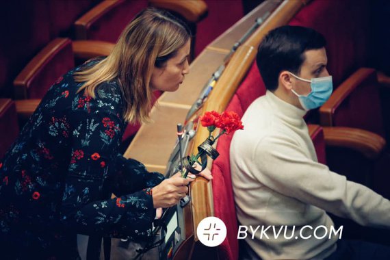 Цветы принесла народный депутат от партии "Голос", член комитета по вопросам здоровья нации, медицинской помощи и медицинского страхования Ольга Стефанишина.