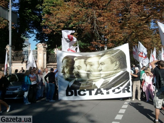 В течение ходы их сопровождали милиционеры. Митингующие скандировали "Юле - волю!", "Банду - геть!" и другие лозунги.