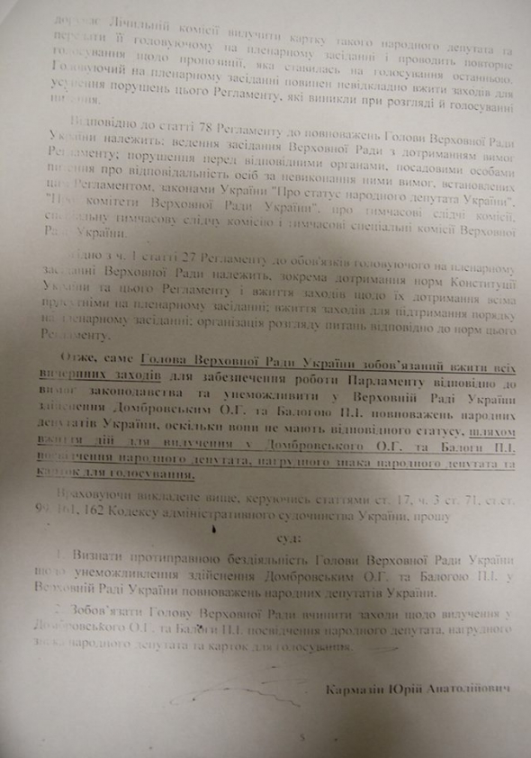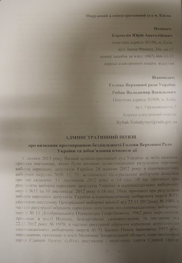 Окружной административный суд города Киева удовлетворил исковое заявление экс-нардепа Юрия Кармазина.