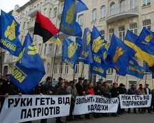 Депутаты местных советов Хмельницкой области от Всеукраинского объединения "Свобода" во главе с председателем фракции ВО "Свобода" в Хмельницком областном совете Игорем Сабием провели пикетирование Администрации президента. Требование акции - немедленно уволить с должности председателя Хмельницкой облгосадминистрации Василия Ядуху.
