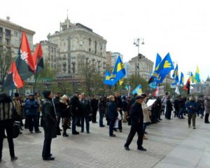 20 апреля у Киевского городского совета собрался митинг активистов ВО "Свобода", "Правого сектора", "Руху захисту української мови" и других организаций.