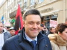 "Не требуйте от нас синхронности, - сказал на вопрос об отсутствии Кличка Тягнибок. У нас с Кличком разные политические силы. Мы - националисты, действуем согласно наших целей, Яценюк - солидарист, а Кличко - либерал. Но возможно, что он еще присоединится к нашей акции".