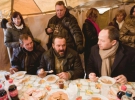 Поговорив с журналистами в палатке об активизации работы соцслужб в связи с морозами, Тигипко уже, было, собрался уходить, но тут патронажные сестры Красного креста предложили вице-премьеру каши. Он не смог отказаться и сел поесть рядом с одним из бездомных — посетителей пункта.