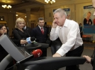 Депутат из БЮТ Валерий Камчатный побегал на беговой дорожке. Перед тем снял пиджак и галстук. Бегал пять минут. Рассказал, что остался доволен, но не может приобрести такой тренажер, потому что у него малая квартира.