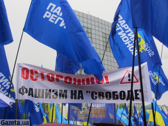 "Сегодня под купол парламента проникла неофашистская шайка – они называют себя Всеукраинское объединение "Свобода", – сообщил донетчанам со сцены народный депутат от ПР Николай Левченко.