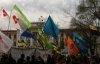Они стоят с разных сторон площади и держат флаги оппозиционных политических сил: "Батькивщина", "Фронт Змін", "Народный рух Украины".