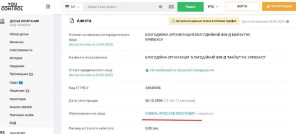 Директор фонда "Будущее Кривбасса" Ярослав Гивель / данные Youcontrol