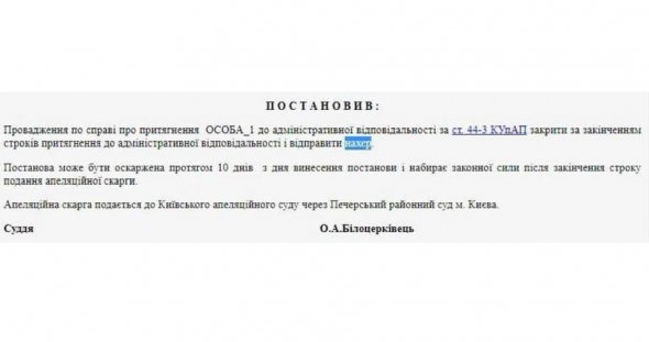 Судья Печерского районного суда города Киева Олег Билоцеркивец закрыл дело о нарушении администратором учреждения карантинных ограничений и отправил "на*ер".