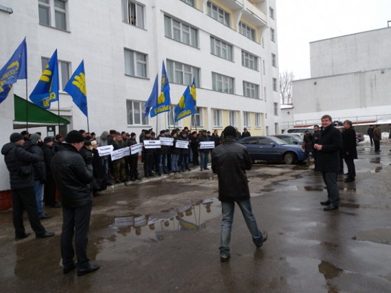"Свободовцы" требовали отставки губернатора области Валентина Хоптяна, который, по их убеждению, блокирует работу областного совета.