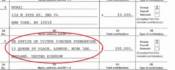 По информации СМИ, в прошлом году Пинчук дал $150 тыс. в фонд Трампа.