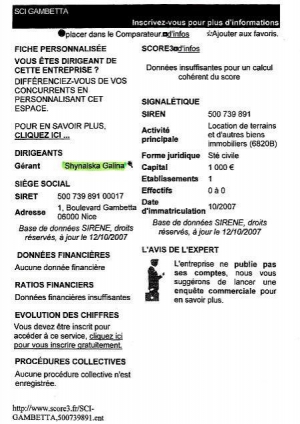 "Согласно официальной информации, полученной из Франции, руководителем и основателем фирмы "Гамбетта" является жена заместителя генпрокурора Александра Шинальского Галина Шинальская", - говорится в заявлении.