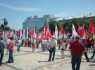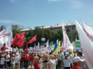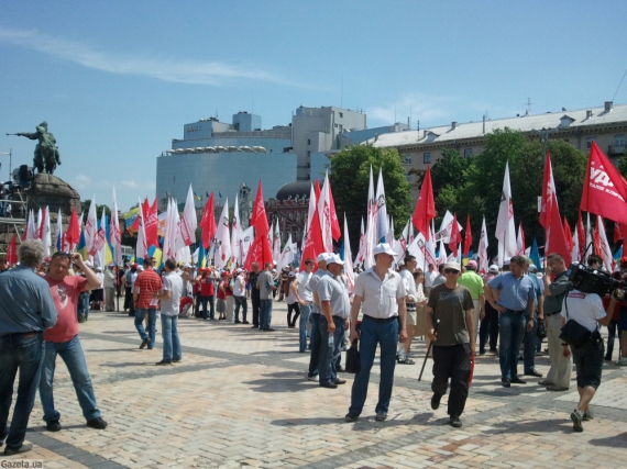 Участники митинга оппозиции, которые шли во главе колонны, с Европейской площади прибыли на Софийскую площадь. Здесь установлена ??сцена, на которой сейчас стоит хор в национальных костюмах.