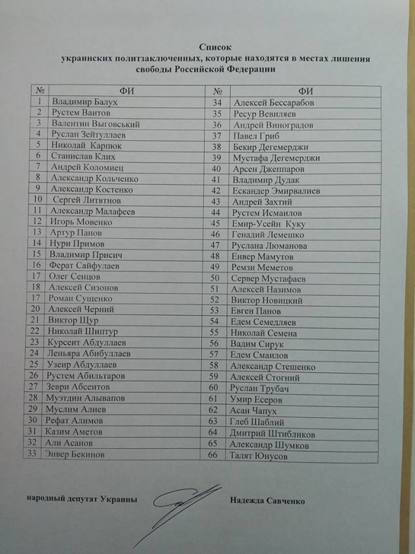 Она добавила список из 66 человек, которые сейчас находятся в русском плену.