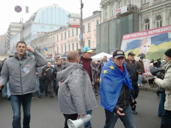 Они пришли к центру столицы и прошли шествием от памятника Шевченко, возле национального университета Шевченко и прошли к Европейской площади, где состоится народное вече. Пока они шли они остановились дважды один раз напротив метро Крещатик, а второй раз на Майдан. Они пели гимн Украины.
