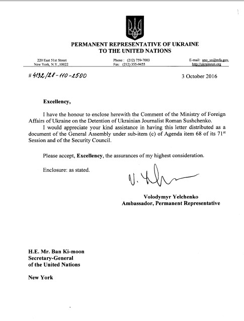 На заседании комитетов Генеральной Ассамблеи ООН поднимут вопрос о незаконном аресте Романа Сущенко.