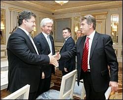 Глядя на Ющенко, Порошенко улыбнулся и тихо поблагодарил .