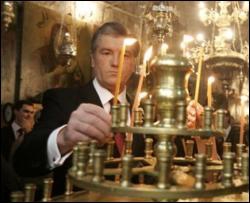 После этого Ющенко установил в Храме Входа Господнего в Иерусалим (Чернобыльская церковь) свечи в память о погибших и о здравии живых ликвидаторов катастрофы, сообщает пресс-служба Президента.
