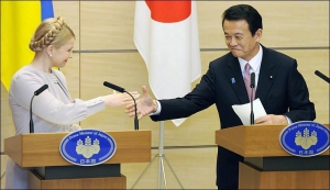 имошенко и премьер Японии Таро Асо в Токио. Март 2009 год. Весной этого года Тимошенко провела ряд встреч с японским руководством.
