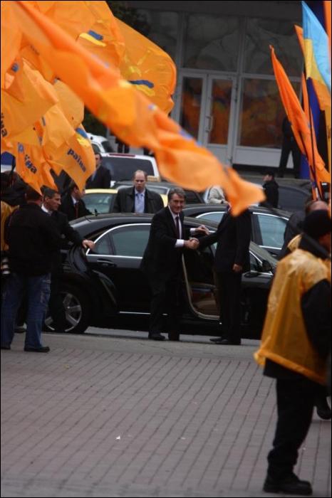 Президент Виктор Ющенко подал документы в Центральную избирательную комиссию. Он пришел под ЦИК под казацкий марш.