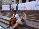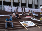 На лестнице возле Украинского дома в Киеве уже второй день подряд голодают активисты из разных городов Украины против "языкового" законопроекта.