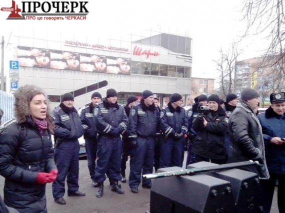 В эти минуты в Черкассах возле Центра детского и юношеского творчества около 30 милиционеров препятствуют показа фильма "Открытый доступ". Одна из частей фильма повествует о "Межигорье" - имение, где живет Президент Украины. Среди присутствовавших на показе фильма и активистка движения "Стоп цензуре" Наталья Соколенко.