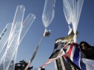В субботу воздушные шары с листовками и компакт-дисками осуждения северокорейского лидера Ким Чен Ына запустили освобожденные бывшие северокорейские беженци рядом с демилитаризованной зоной (DMZ), которая отделяет Северную и Южную Кореи.