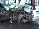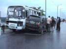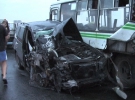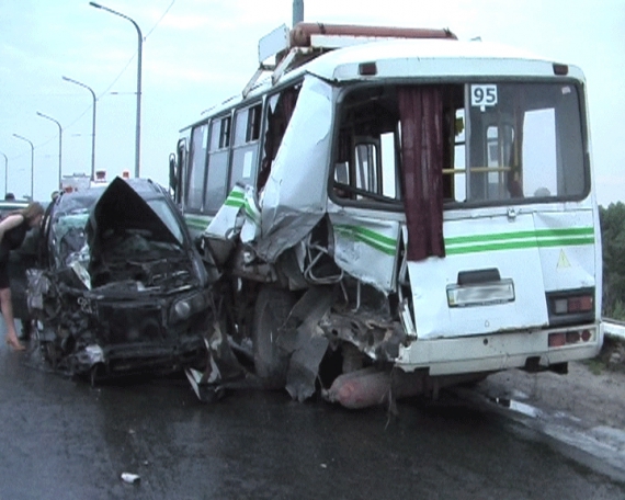 В Днепропетровске, на Кайдакском мосту, примерно в половине девятого вечера, автомобиль "BMW Х-5" догнал автобус "ПАЗ". После удара в заднюю часть автобуса внедорожник разбился и он остановился уже вплотную к "ПАЗу".