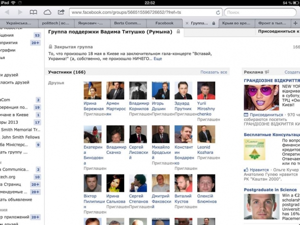 В социальной сети Фейсбук создали закрытую группу в защиту Вадика "Румына" Титушко, избившего журналистку 5 канала Ольгу Сницарчук .