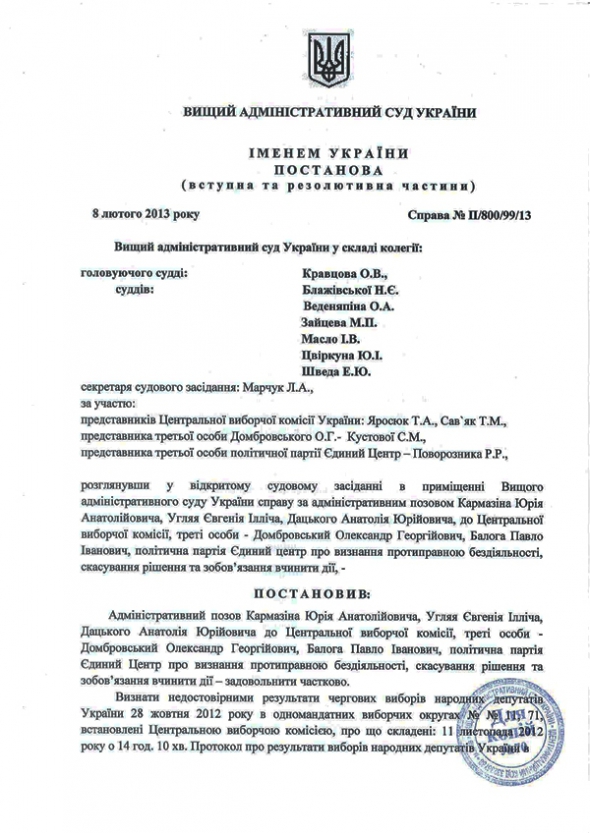 Высший Административный суд Украины своим решением от 8 февраля 2013 г. не только лишил депутатских полномочий нардепов Александра Домбровского и Павла Балогу, но и дал понять всем депутатам: так может быть с каждым, кто не согласен с политикой партии. Петра Порошенко и Виктора Балогу это коснулось в первую очередь.