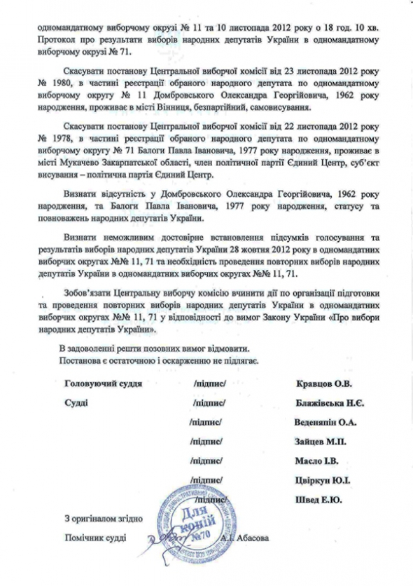 Решение ВАСУ по делу "Балоги - Домборовского" - это мина замедленного действия. И не столько для оппозиции, сколько для власти. Только сама власть этого пока, наверное, не понимает. Согласно Кодексу административного судопроизводства, срок обращения в суд относительно действий ОИК об итогах голосования и действий ЦИК о результатах выборов в мажоритарном округе составляет 5 дней. В данном случае этот срок был пропущен, так как прошло 4 месяца со дня голосования.