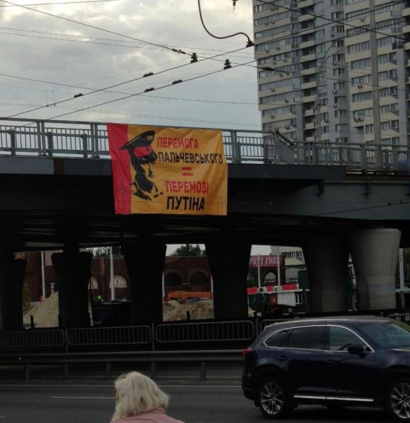 Сегодня на столичных мостах появились баннеры, которые указывают на пророссийскую позицию Андрея Пальчевского.
