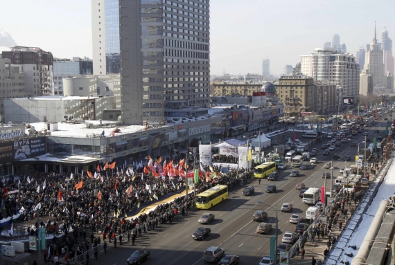 Сегодня, 10 марта, российская оппозиция проводит пятый за последние три месяца санкционированный властями многотысячный митинг протеста против нарушений избирательного законодательства. Правительство Москвы и заявители акции согласовали проведение с 11:00 до 14:00 (по киевскому времени) митинга на пешеходной и парковочной зонах нечетной стороны улицы от Арбатского переулка до дома N19 численностью до 50 тысяч человек, сообщает "Интерфакс".
