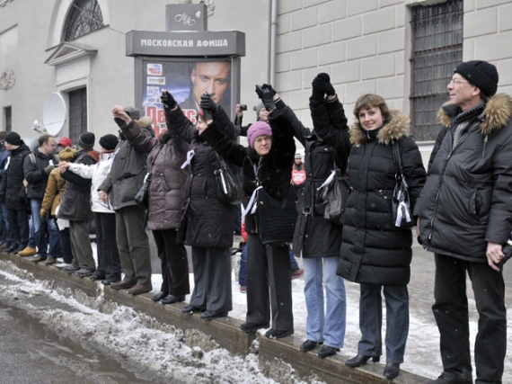 Сегодняшний флеш-моб стал продолжением многотысячных акций протеста "За честные выборы", начавшихся в Москве в декабре прошлого года после думских выборов.