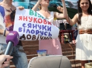 На день рождения президента Виктора Януковича граждане и активисты, протестующие против языкового закона под Украинским домом, провели акцию "Подари Президенту подарок".