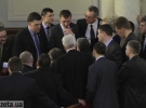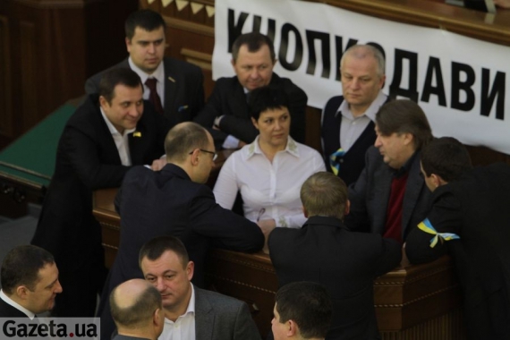 В зале также находились депутаты фракций Партии регионов и Компартии Украины - они сидели на своих местах.
