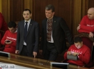 В Верховной раде 14 народных депутатов от фракции УДАР и 20 от фракции "Батькивщина" сегодня утром продолжали блокировать трибуну и президиум парламента.