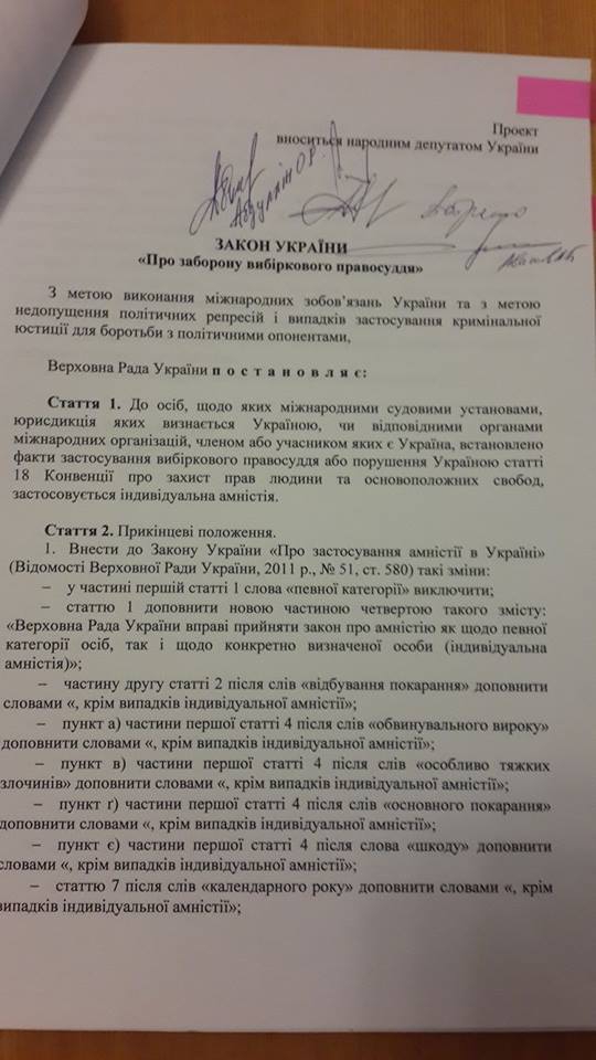 "Только вместе с нардепами Арсением Яценюком, Павлом Петренко, Александром Абдулиним и Андреем Кожемякиным внесли законопроекты по освобождению Юлии Тимошенко: 1) "О запрете выборочного правосудия"; 2) Постановление ВР "О выполнении международных обязательств Украины относительно увольнения Тимошенко Юлии Владимировны". Рассчитываем на голосуваня в ближайшие часы!", - написал Аваков.