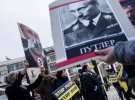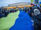 Люди пели гимн Украины, держали сине-желтые флаги, плакаты Stop Putin, "Путин - вон из Украины".