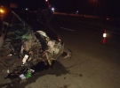 В Киеве вчера в одиннадцать вечера на улице Маршала Гречко в автокатастрофе погибли два человека. Автомобиль слетел с дороги, ударился в осветительную опору, развалился пополам, но проехал еще несколько метров вперед. Один пассажир погиб на месте, второй - в карете скорой. Третьего в тяжелом состоянии увезли в больницу. Водитель не пострадал.