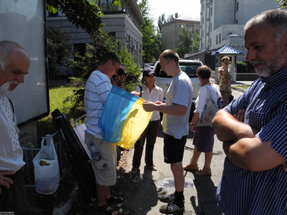"Пикетирование российского посольства происходит из-за того, что сегодня в Украину приезжает Путин. Мы все знаем, какие политические события предшествовали его визита. Политический кризис в Украине вызван голосованием в Раде по антиукраинский, антиконституционный закон. И доморощенные московские холуи, которые сидят в Верховной Раде , правительстве и администрации президента, они тут не с Марса появились и служат конкретно Кремлю и Путину - так называемом "Русскому миру", - сказал он.