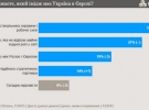 Относительно имиджа их страны в Европе, то у украинцев иллюзий нет. 32 % из них убеждены, что Украина рассматривают прежде всего как поставщика сырья и дешевой рабочей силы. Лишь 14 % уверены, что Украина воспринимается как надежный стратегический партнер.