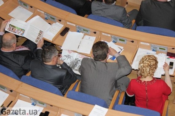Около 10.00 двое мужчин останавливали областных депутатов при входе в Облгосадминистрацию. Там начиналась сессия. Каждому выдавали лист формата "А-3", который разделили в иллюстрациях на четыре страницы.