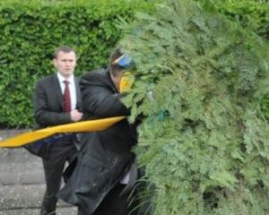 Напомним, во время возложения венков президентами Украины и России Виктором Януковичем и Дмитрием начался сильный ливень с ветром и градом. В настоящее время Янукович и Медведев как раз шли к памятнику. Когда Янукович положил свой венок, тот вдруг оторвался и полетел на него. Президент несколько секунд самостоятельно боролся с венком, пока ему не помогли охранники, которые установили венок на крепления.