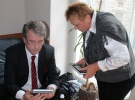 - Виктор Андреевич с самого утра на ногах. Сегодня мы полгорода прошли пешком, - говорит руководитель информационной службы партии Юлия Торговец. - Уже немного времени осталось до выборов, сейчас активно общаемся с людьми. Виктор Андреевич после приземления самолета сразу был на областном телевидении. Сегодня запланированы еще два прямых эфира на радио. Вечером едем в Стрый непосредственно к избирателям.