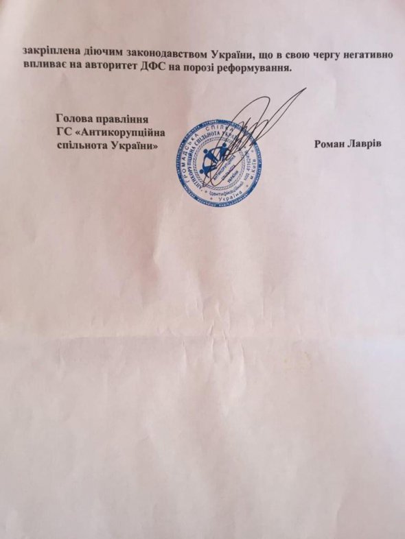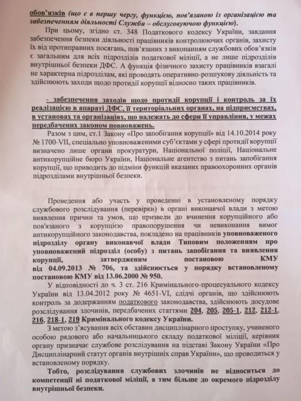 По словам председателя правления ГС "Антикоррупционное сообщество Украины" Романа Лаврива, нет ни одного действующего нормативно-правового акта (кроме внутренних ведомственных приказов), которым бы предусматривалось существование в органах доходов и сборов подразделений внутренней безопасности или аналогичных с соответствующими функциями.