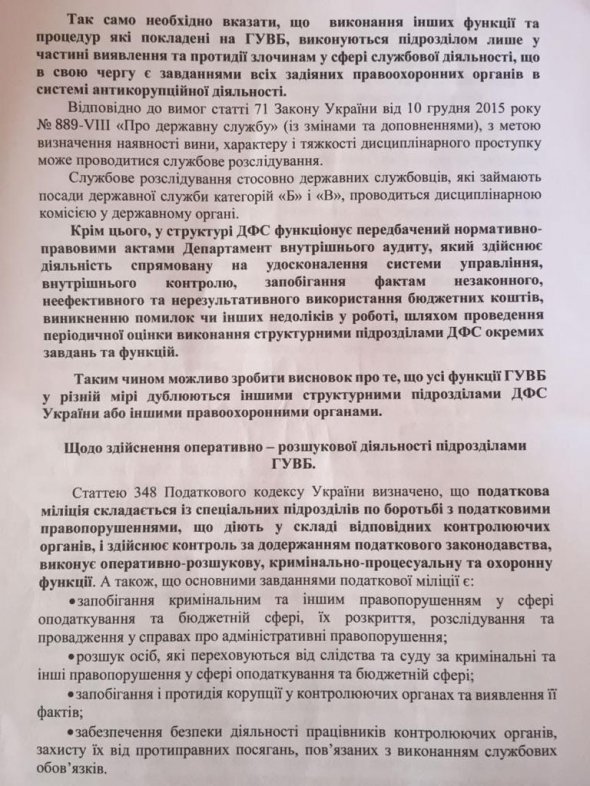 В ГФС признают, что фактически все функции ГУВБ разной степени дублируют другие структурные подразделения ГФС и правоохранительных органов. По словам советника и.о. председателя ГФС Александра Порхуна, управление уже давно не выполняет возложенные на него функции. Зато руководство ГФС получает все больше "сигналов" того, что "безопасность" передает служебную информацию сторонним лицам и занимается "бизнесом", помогая субъектам внешнеэкономической деятельности с таможенным оформлением.