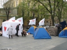 Сегодня в 12:00 в центре Львова, рядом с памятником Тарасу Шевченко представители партии "Батькивщина" разбили палаточный городок и начали голодовку.
