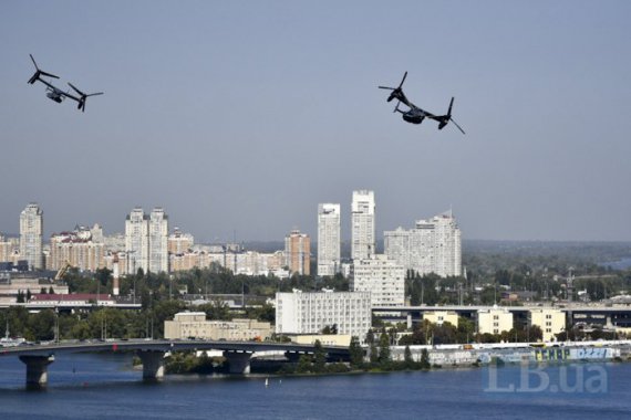 Американские самолеты CV-22B Osprey, которые участвуют в украинско-американских военных учениях Сил специальных операций, пролетели над Киевом. Об этом в среду сообщило посольство США в Украине.